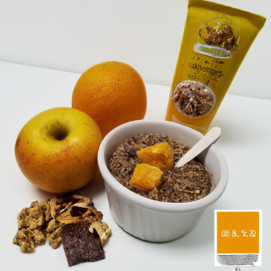 Mix de gengibre desidratado, laranja e maca desidratados e noz moscada com nibs de cacau