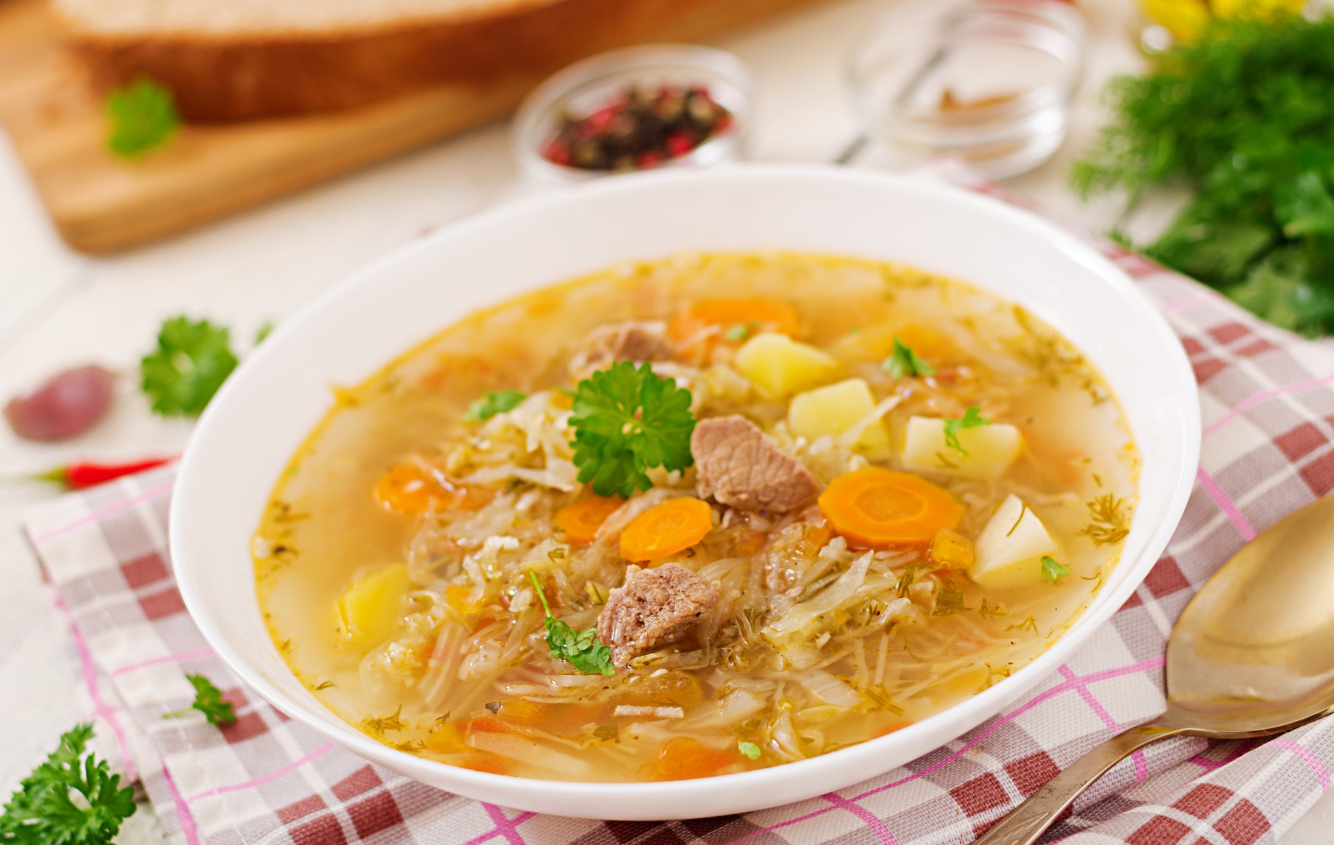 Sopa de abóbora com couve e carne seca